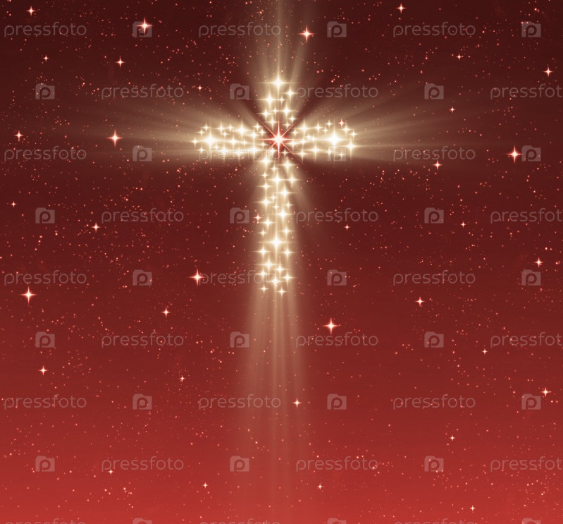Большой светящийся христианский крест в звездном небе