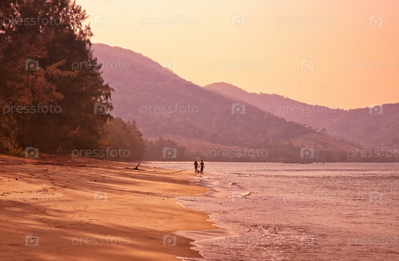 Пара гуляет по пляжу