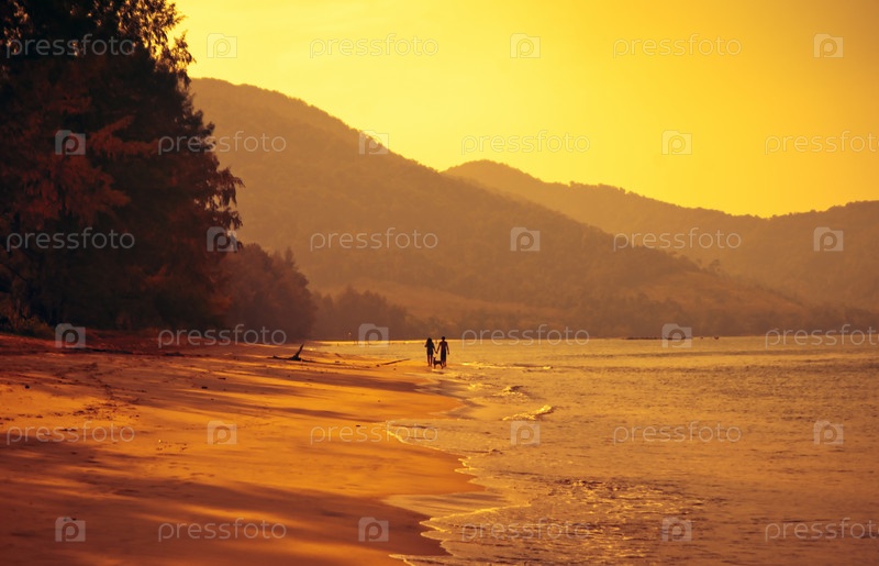 Пара гуляет по пляжу