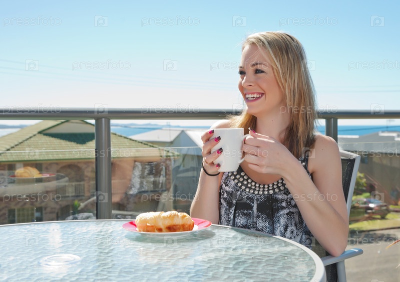 Молодая женщина завтракает в кафе