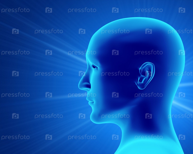 Трехмерная голова человека на голубом фоне