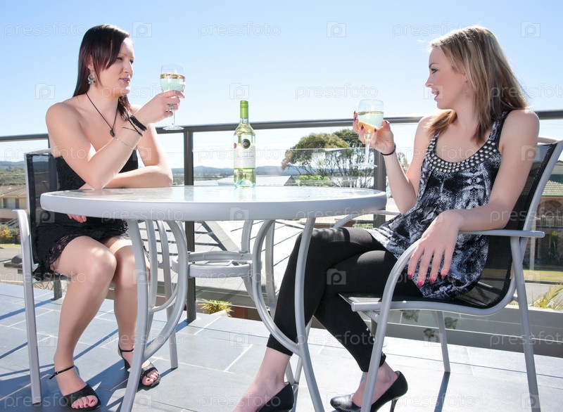 Молодые женщины с сыром и шампанским в ресторане или кафе на открытом воздухе