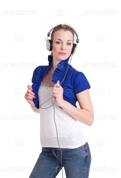 Молодая женщина слушает музыку в наушниках