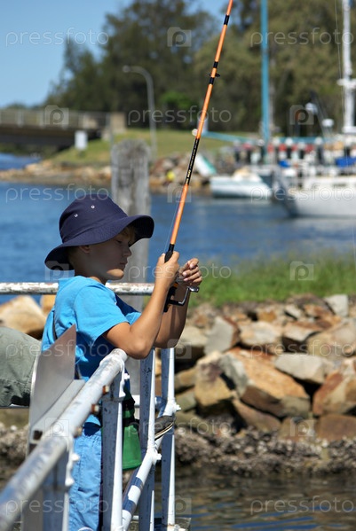 Мальчик проверяет наживку во время рыбалки