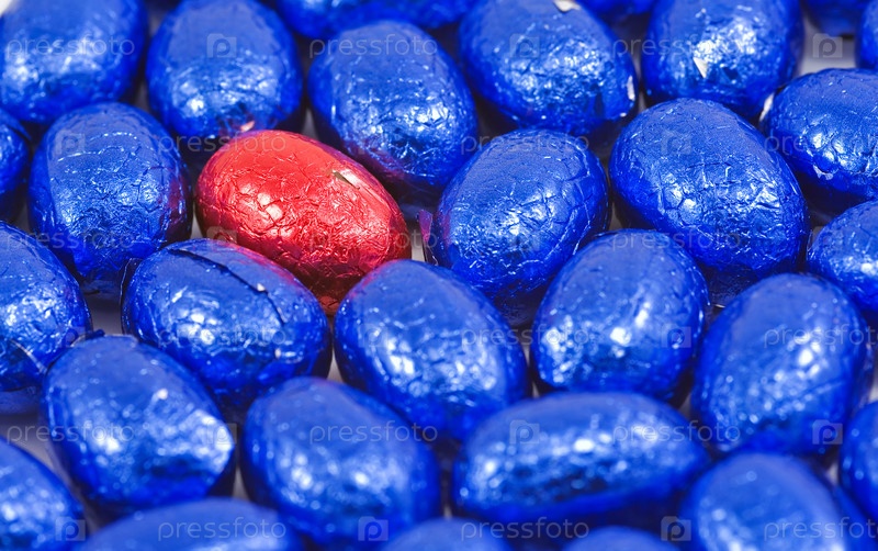 Синие пасхальные яица и одно красное