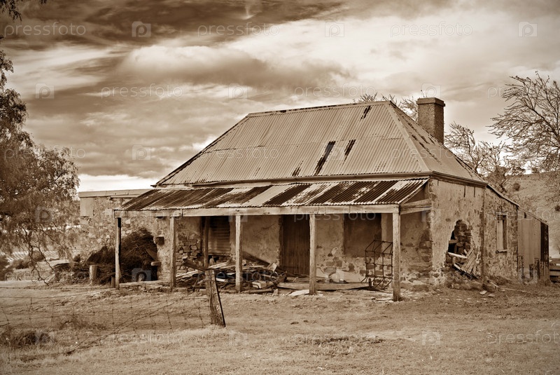 Старый разрушенный фермерский дом, сепия