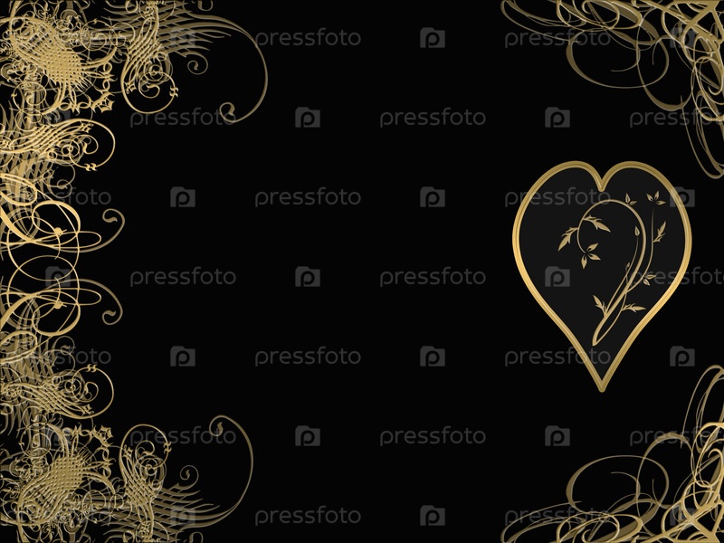 Золотое сердце и узор на черном фоне
