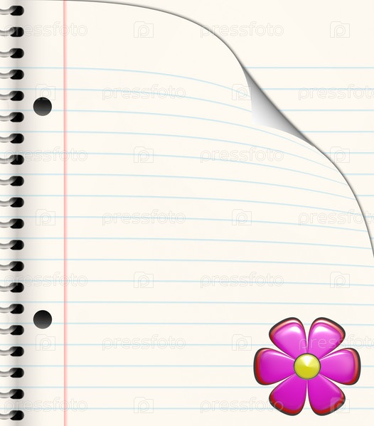 Тетрадь на спирали с ярким цветком в углу страницы