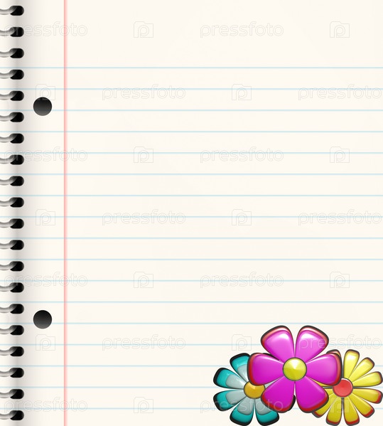 Тетрадь на спирали с тремя яркими цветами в углу страницы