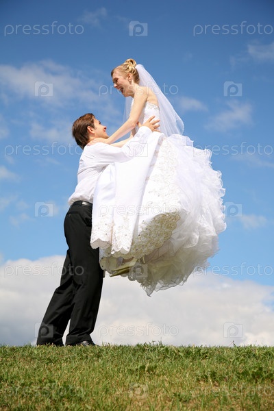 Жених поднимает невесту