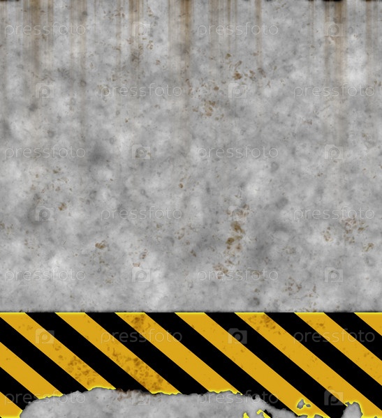 Старый грязный шероховатый лист металла с предупредительными полосами