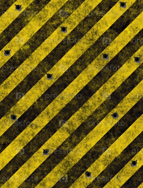 Старый грязный шероховатый лист металла с предупредительными полосами