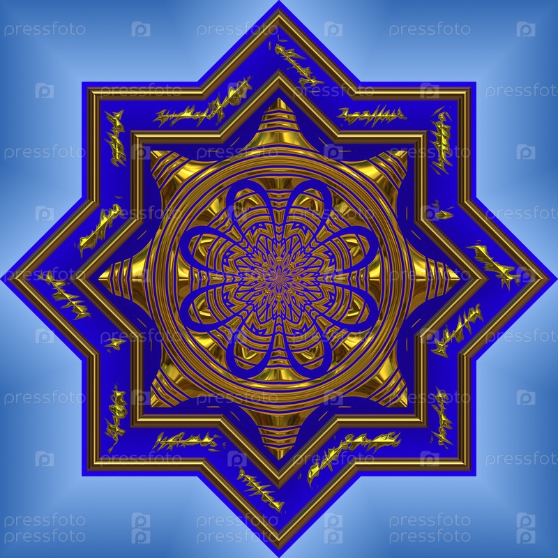 Яркая красивая синяя мандала с золотым рисунком