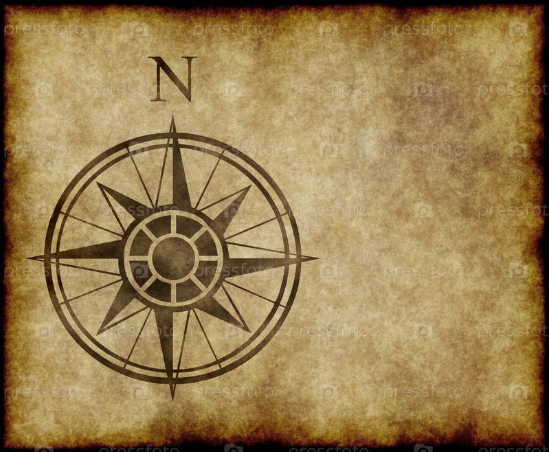Роза ветров и символ севера на старой пергаментной карте с пространством для текста