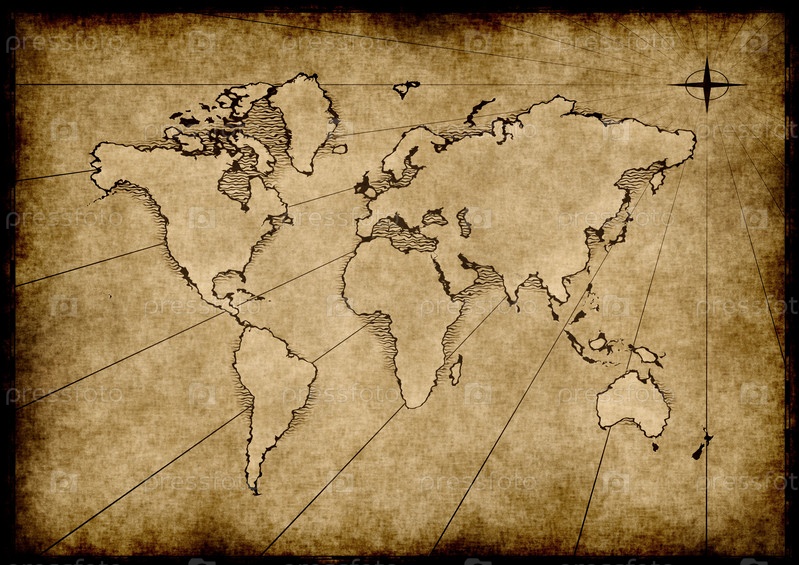 Карта старого мира на пергаментной бумаге