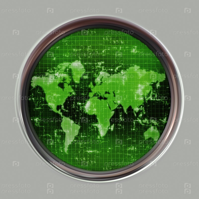 Карта мира на экране гидролокатора или радара