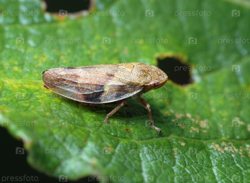 Насекомое сидит на зеленом листе