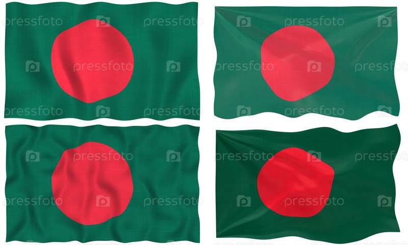 Четыре флага Бангладеша на белом фоне