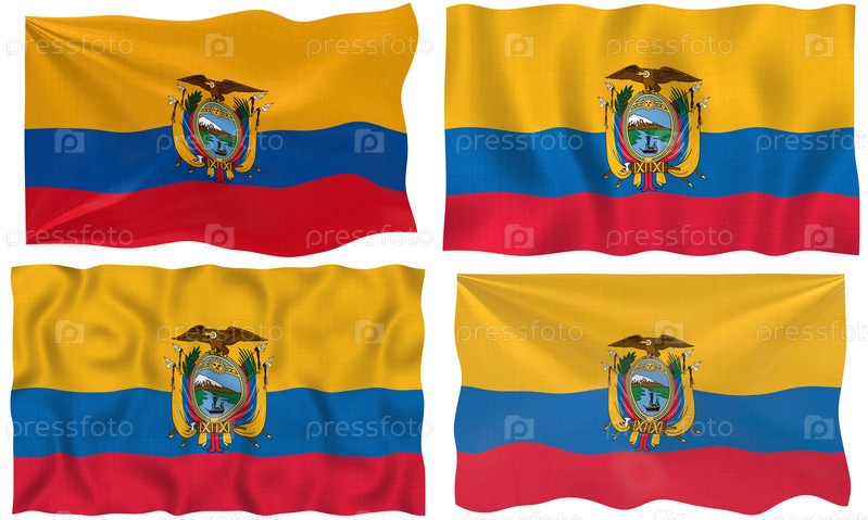 Четыре флага Эквадора на белом фоне