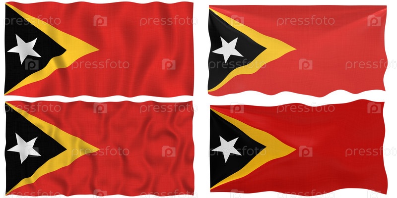 Четыре флага Восточного Тимора на белом фоне