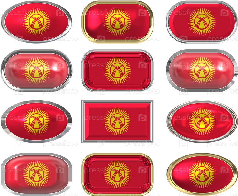 Двенадцать кнопок с флагом Кыргызстана