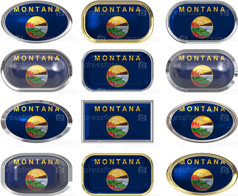 Двенадцать кнопок с флагом Монтаны