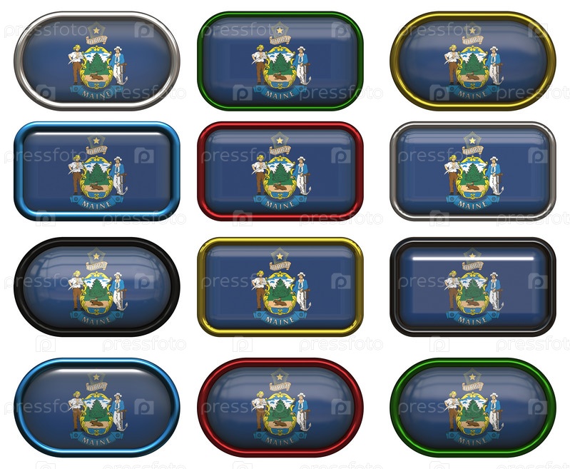 Двенадцать кнопок с флагом штата Мэн