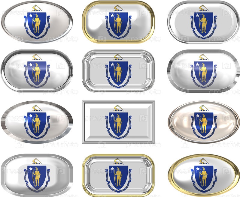 Двенадцать кнопок с флагом Массачусетса