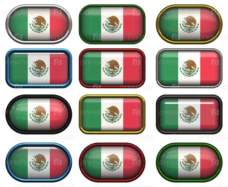 Двенадцать кнопок с флагом Мексики