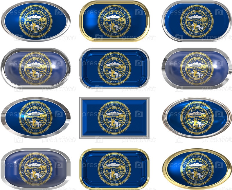 Двенадцать кнопок с флагом штата Небраска