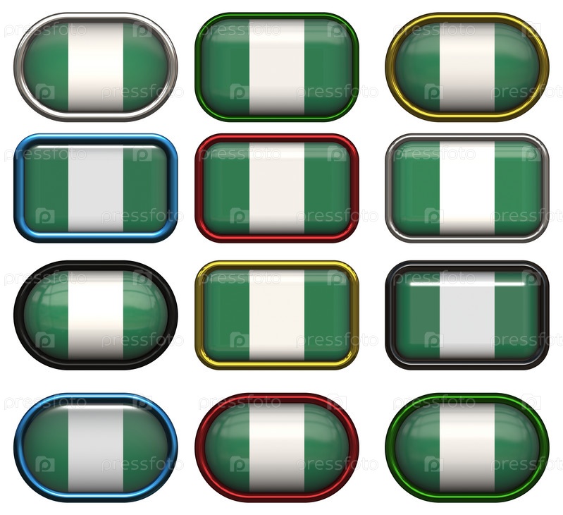 Двенадцать кнопок с флагом Нигерии