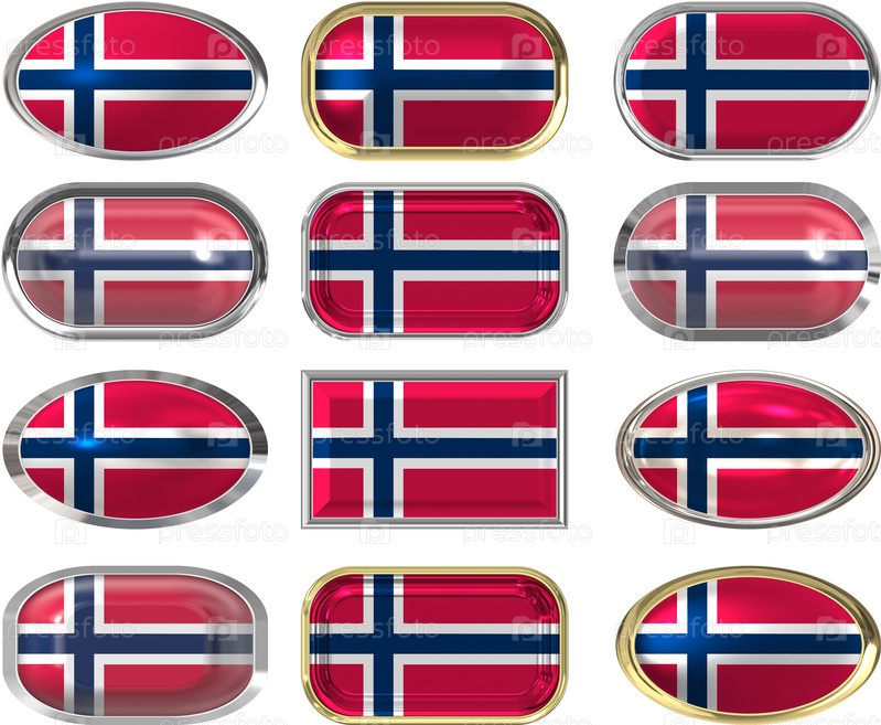 Двенадцать кнопок с флагом Норвегии