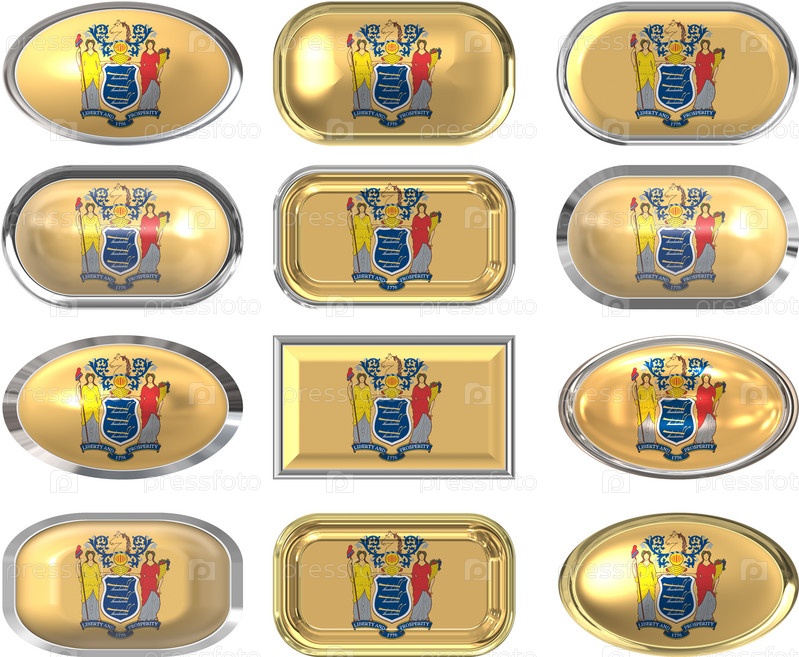 Двенадцать кнопок с флагом Нью-Джерси