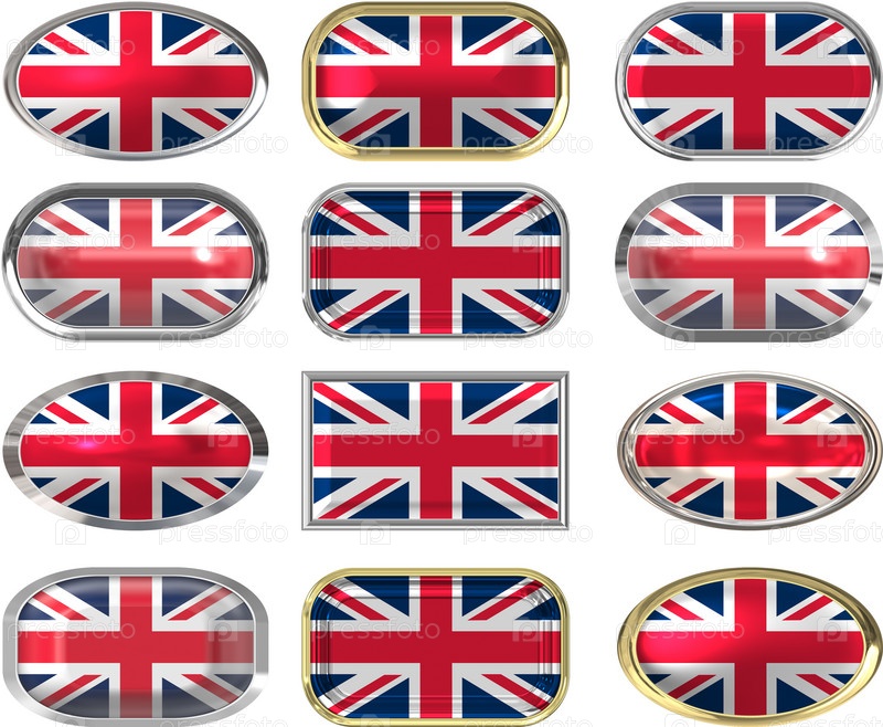 Двенадцать кнопок с флагом Соединенного Королевства