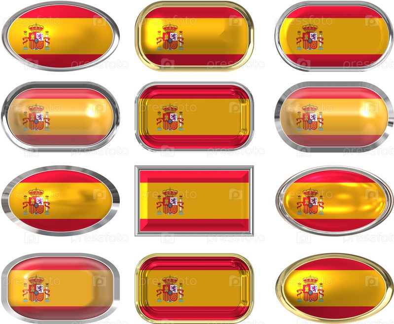 Двенадцать кнопок с флагом Испании