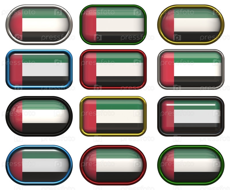Двенадцать кнопок с флагом Объединенных Арабских Эмиратов