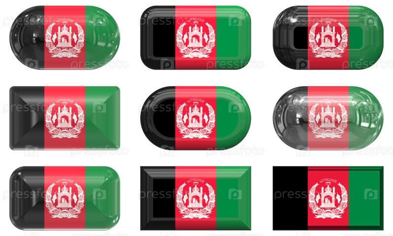 Девять стеклянных кнопок с флагом Афганистана