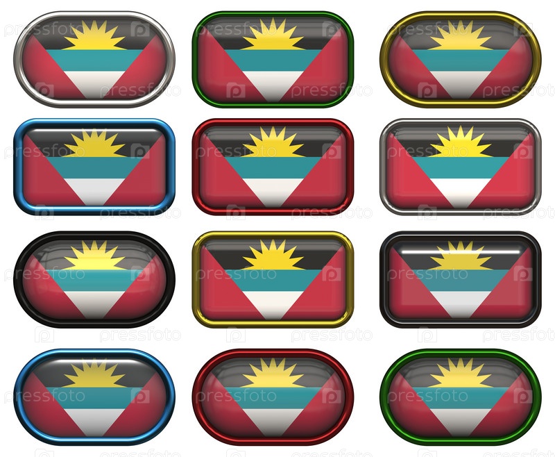Двенадцать кнопок с флагом Антигуа Барбуды