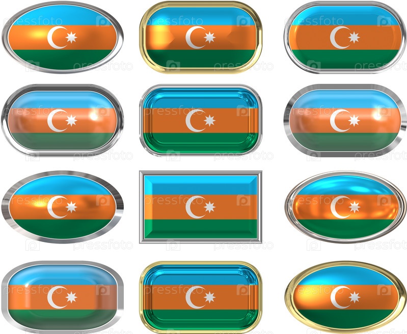 Двенадцать кнопок с флагом Азербайджана