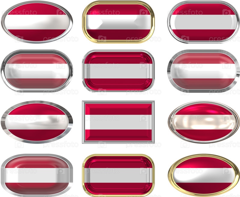 Двенадцать кнопок с флагом Австрии