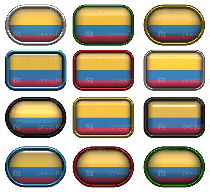 Двенадцать кнопок с флагом Колумбии