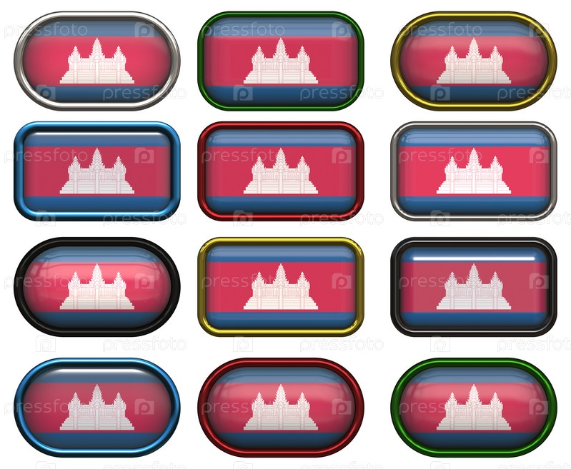 Двенадцать кнопок с флагом Камбоджи