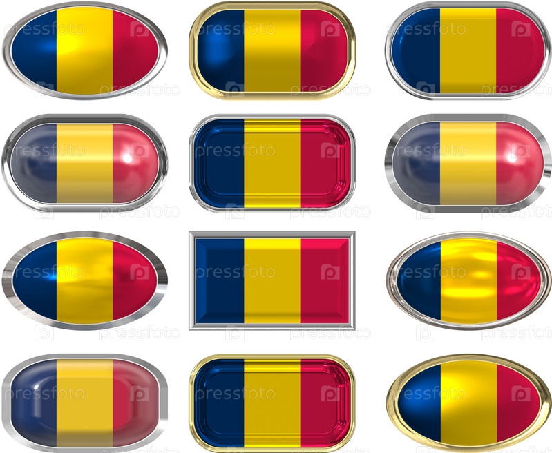 Двенадцать кнопок с флагом Чада