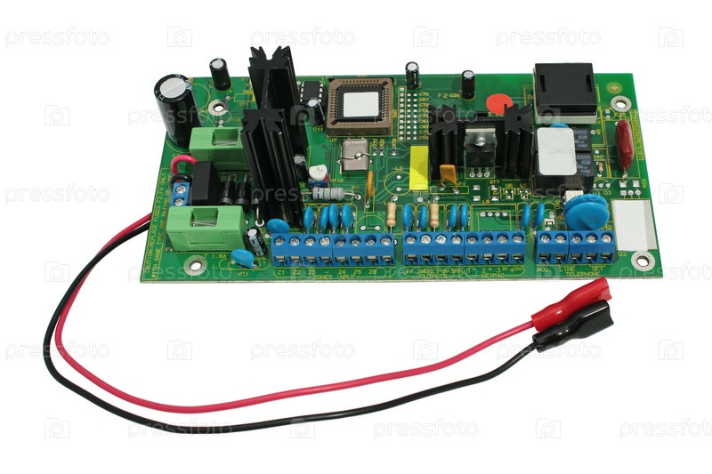 Электронная плата с бесперебойным электроснабжением на белом фоне