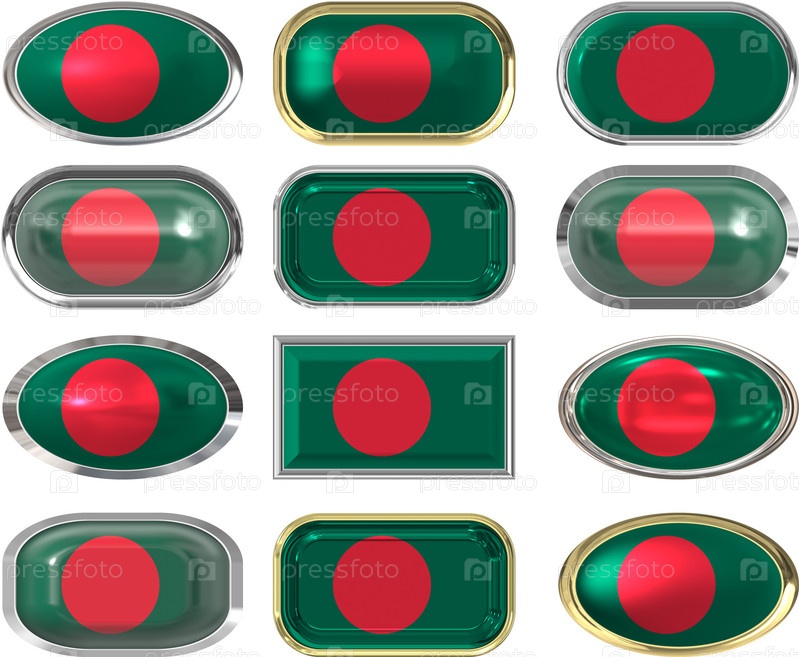 Двенадцать кнопок с флагом Бангладеша