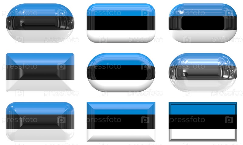 Девять стеклянных кнопок с флагом Эстонии
