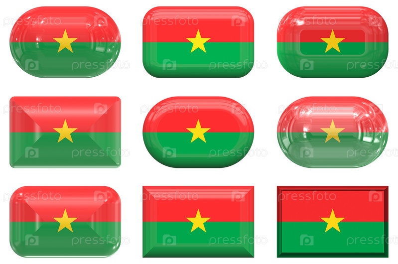 Девять стеклянных кнопок с флагом Буркина-Фасо