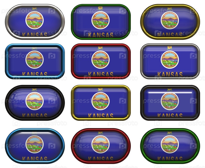 Двенадцать кнопок с флагом Канзаса