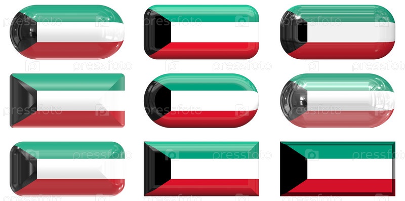 Девять стеклянных кнопок с флагом Кувейта
