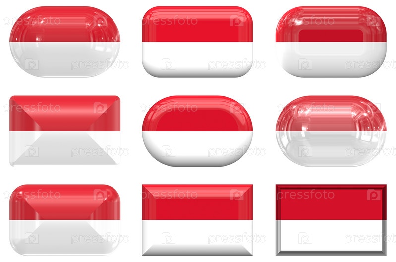 Девять стеклянных кнопок с флагом Индонезии